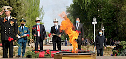Төрага Жумабеков Улуу Жеӊиштин 75 жылдыгына арналган эскерүү митингине катышты Жеңишке 75 / 09/05 10:28