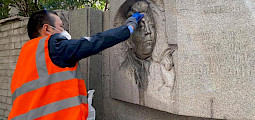 Гапар Айтиевдин мемориалдык тактасындагы кара боёк жууп-тазаланды – Бишкек мэриясы Коом / 01/10 11:00