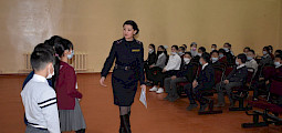 Бишкекте милициянын кайгуул кызматкерлери мектеп окуучуларына түшүндүрүү иштерин жүргүзүүдө Коом / 03/04 10:18