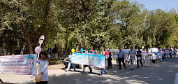 Токтогул районунда "COVID илдетин эмдөө менен жеңебиз!" урааны менен жөө жүрүштөр өтүүдө Аймак / 07/09 11:55
