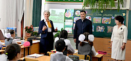 Президент Чолпон-Ата шаарында Ысык-Көл облусундагы жалгыз мектеп-комплексине барды Президент / 01/06 19:09