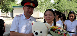 Ош шаардык милициясы ЖРТдан эӊ жогорку балл алган Кызжибек Жээнбекованы куттуктады Коом / 23/06 11:22