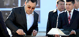 Президент өлкө тарыхындагы алгачкы көп функциялуу Manas Tower 45 мейманкана комплексинин курулушуна капсула салды Президент / 14/11 14:03