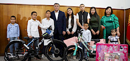 Камчыбек Ташиев көп балалуу жалгыз бой энеге Токмок шаарынан батир белек кылды