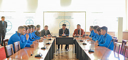 Министр Алтынбек Максүтов дүйнө чемпиону болгон хоккейчилер менен жолукту
