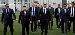 Президент Улуттук футбол академиясынын аймагын кыдырып, футболчулардын машыгуусу менен таанышты