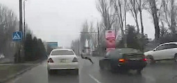 Бишкекте автоунаа көпүрөдөн кулап, оодарылып калган (видео)