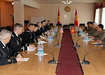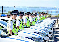 Талас шаарынын борбордук аянтында милиция кызматкерлери саптык кароодон өтүштү