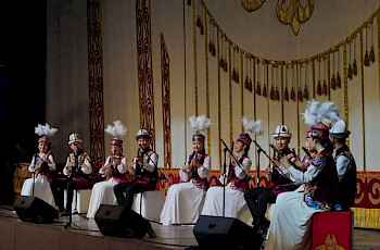 Бүйүр кызыткан мындай иш-чараны Улуттук тарых музейинин алдында катар тизилген 600гө жакын борбордон жана аймактардан келген оркестр коллективдеринин концерттик программасы коштоду.