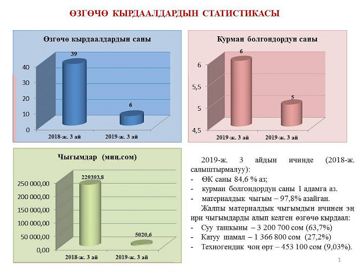 Маалыматка ылайык, өткөн жылы алгачкы үч ай аралыгында 39 өзгөчө кырдаал катталса, быйыл үчөө катталган.