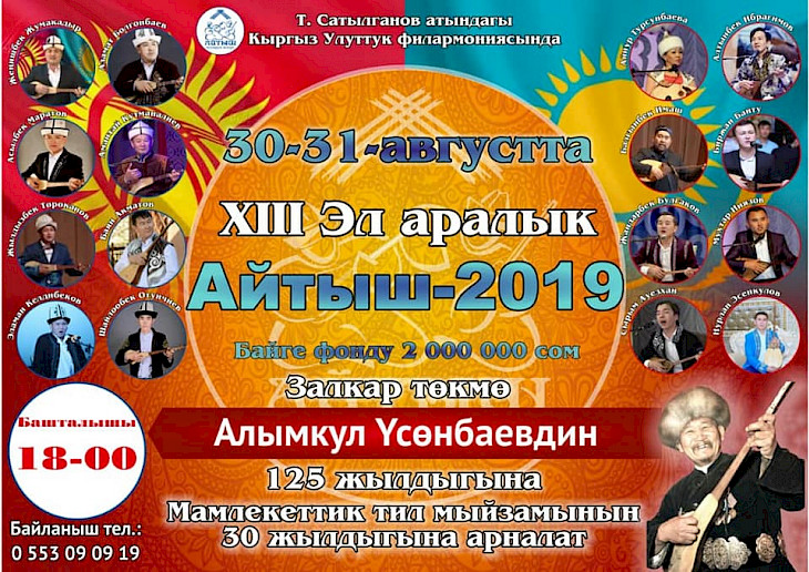 Айтыш төкмө акын Алымкул Үсөнбаевдин 125 жылдыгына жана Мамлекеттик тил мыйзамынын 30 жылдыгына арналып өткөрүлөт. Иш-чара Токтогул Сатылганов атындагы Кыргыз улуттук филармониясында өтөт.