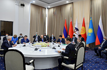 Делегация башчылары тар форматта күн тартибинде коюлган ЕАЭБ алкагында интеграциялык кызматташуу тууралуу 15 маселенин 10 карашат.