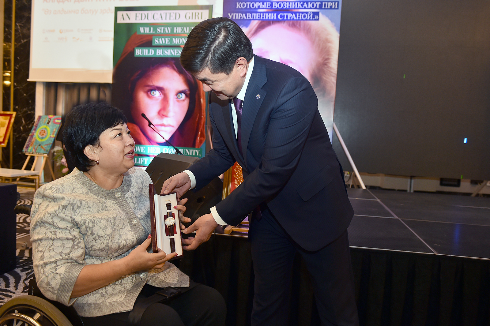 «Бул катардагы ченем болуп калган. Советтик мезгилде биз трактор айдап, социализмди курган аялдар менен сыймыктансак, бүгүн биздин кымбаттуу айымдарыбыз мамлекеттин жашоосунун дээрлик бардык чөйрөлөрүнө тартылган. Ата мекендик экономикада ИДПдагы ишкерликтин үлүшү 42%, тейлөө кызматтары чөйрөсүндө – 44%. Бул экономиканын аялдар басымдуулук кылган тармактары. Калктын 60%ы айыл чарбасына тартылган деп айтуу менен биз мында аялдар башкы кыймылдаткыч күч экенин так ырастай алабыз. Өзүңүздөр билдигендей, сүт азыктарын өндүрүү экспортко багытталган ийгиликтүү ата мекендик бренддердин бири болуп саналат. Бул тармакты үзүрлүү жана жагымдуу кылган дал ушул сиздер - айымдарсыздар», - деди Мухаммедкалый Абылгазиев.