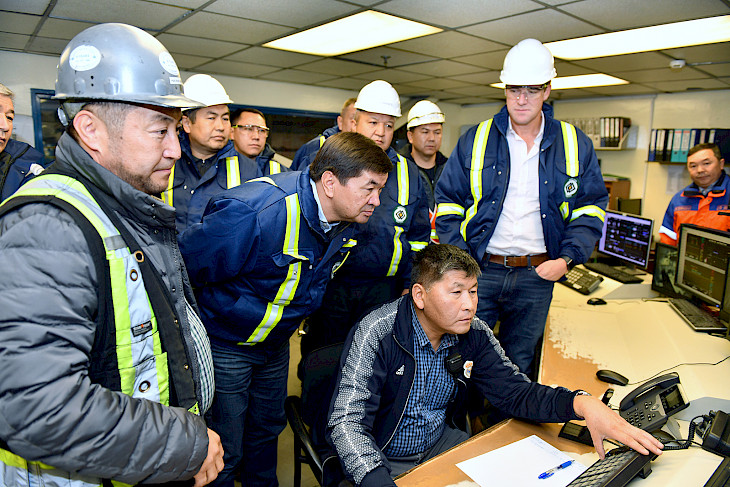 Өкмөт башчы иши сапарынын алкагында «Centerra Gold Inc.» компаниясынын президенти Скотт Перри менен бирге оор техникалар колдонулган карьерди көрдү, ошондой эле алтын өндүрүүчү фабрикага барды.