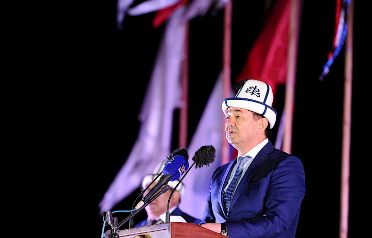 Премьер-министр өз сөзүндө чогулгандардын баары менен бирге бул салтанаттуу иш-чарага катышып жатканына кубануусун белгилеп, Кыргыз Республикасынын Президенти С.Ш.Жээнбековдун атынан келгендердин баарын чын дилден бул маанилүү күн менен куттуктады.