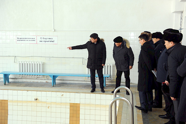 Андан соң Премьер-министр Мухаммедкалый Абылгазиев Кара-Балта шаарындагы «Манас» спорт комплексинин кышкы бассейнинин абалын көрүп чыкты.