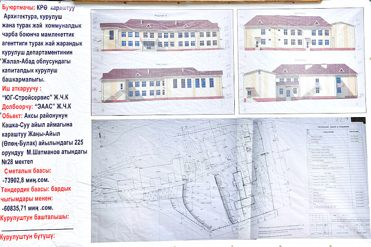 Республикалык бюджеттен каржыланып жаткан мекеменин сметалык баасы 59 млн сомду түзөт. Курулуш иштери аяктоо алдында турат.