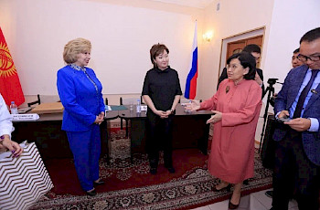 Китеп тапшыруу расмий аземине Билим берүү жана илим министири Гульмира Кудайбердиева жана КР USAID өкүлчүлүгүнүн директору Гэри Линден катышышты.
