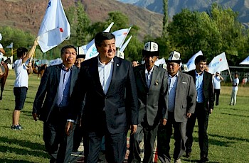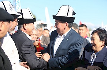 Бишкек, 14.09.17 /Кабар/. Сооронбай Жээнбеков менен жолугушуу үчүн Аксы районунун борбордук стадионуна 10 миңдей киши келди. Жеңижок, Ниязалы, Төлөгөн Касымбеков сындуу кыргыздын алп уулдарынын кичи мекени болгон Аксынын тургундары Сооронбай Жээнбековду чоң ураан-сүрөөн менен тосуп алды.