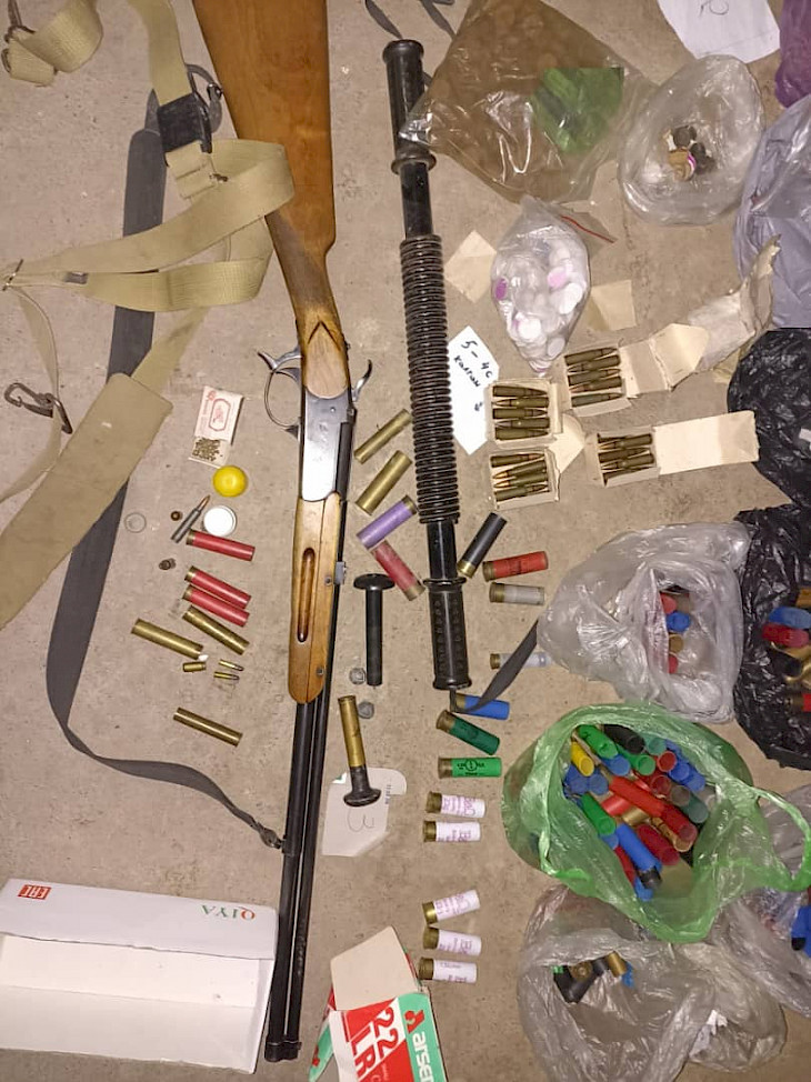 Маалыматка ылайык, милиция кызматкерлери Аксы районунун Ак-Жол айылынын 54 жаштагы М.Н. аттуу тургунунун үйүн тинтүү жүргүзүү учурунда кампасынан бир нече баштыкка бөлүнгөн, көк-жашыл жана ак түстөгү кескин жыты бар зат табылган. Мындан сырткары, мыйзамсыз сакталып турган сайлуу ок атуучу курал, ок-дарылар жана 130 миң сом өлчөмдө акча табылып алынган.