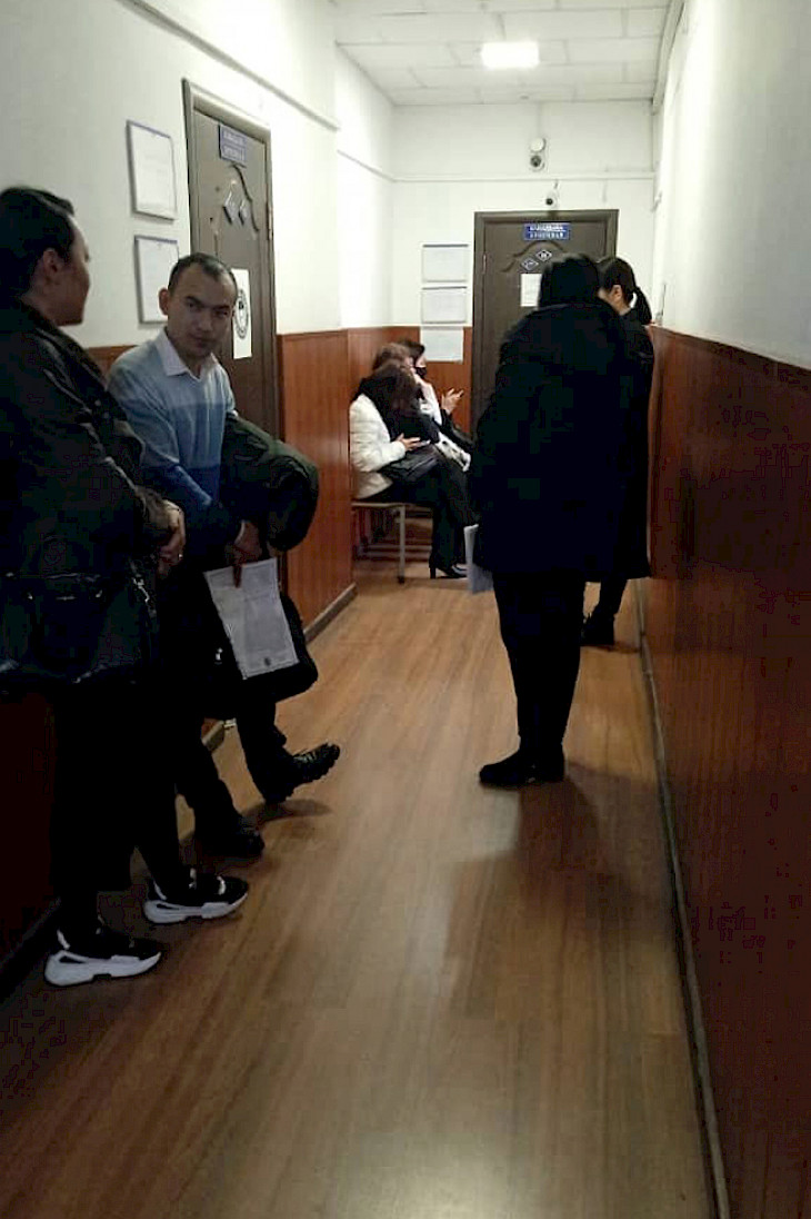 Маалыматка ылайык, Октябрь райондук сотунда сот отурумдарынын катышуучулары коридордо дубалга жөлөнүп тик турган учурлары көп. Анткени, аларга жетишерлик санда отургучтар каралган эмес. Натыйжада улгайган адамдар да сот отуруму башталганга чейин отурарга орундук табышпайт. Сотко келүүчүлөргө түзүлгөн шарт үч эле орундук коюу менен чектелген.