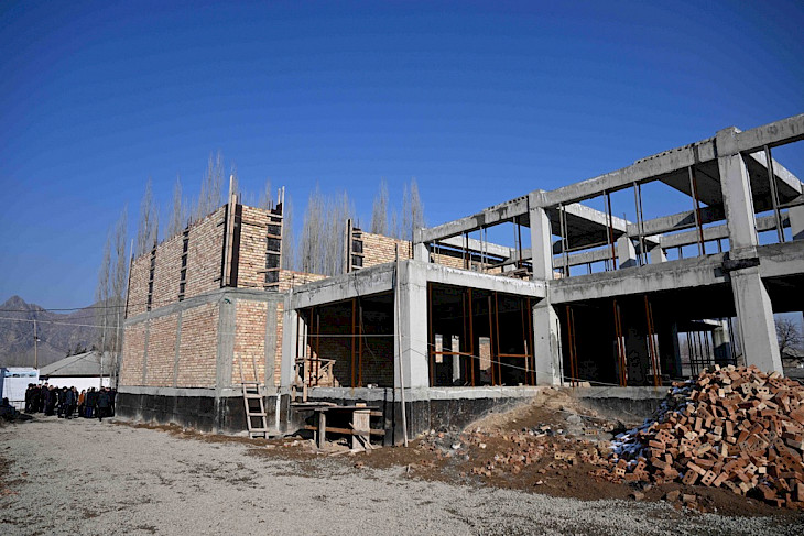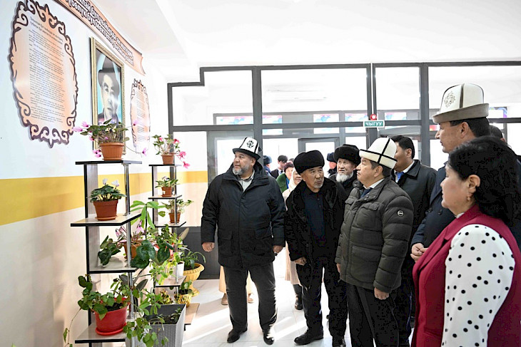 Ошондой эле минкаб башчысы Төлөйкөн айыл аймагынын Бирлешкен айылында курулуп жаткан 275 орунду мектептин абалы менен таанышты. 2015-жылы курулушу башталып, ортодо курулушу токтоп калган бул объектини тез арада бүткөрүү боюнча Минкаб башчысы тиешелүү тапшырмаларды берди.