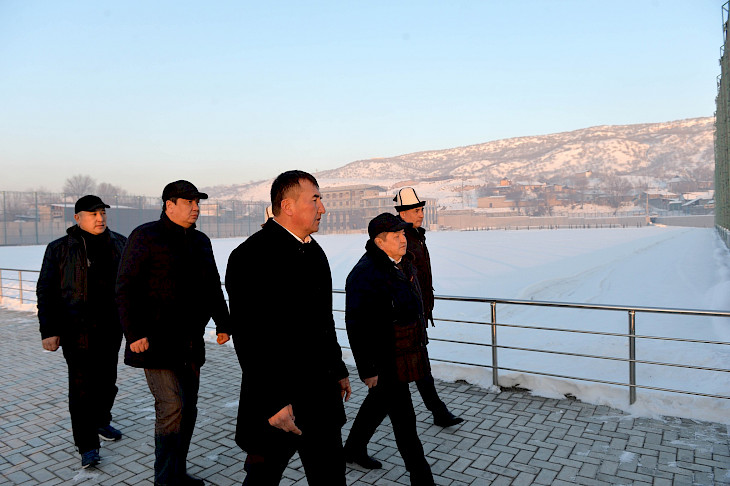 Андан соң министрлер кабинетинин башчысы Жалал-Абад шаарындагы Футбол академиясы курулуучу жерде болду.