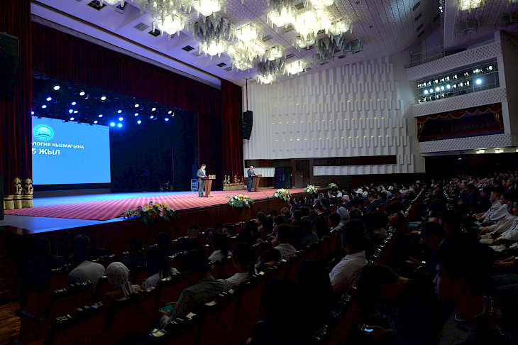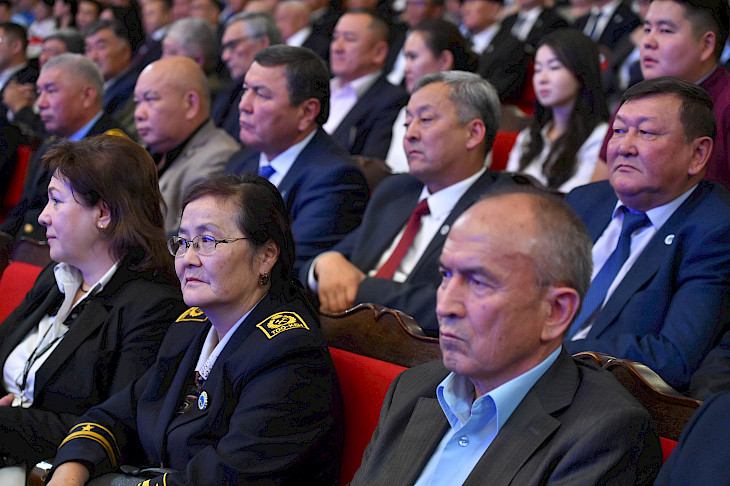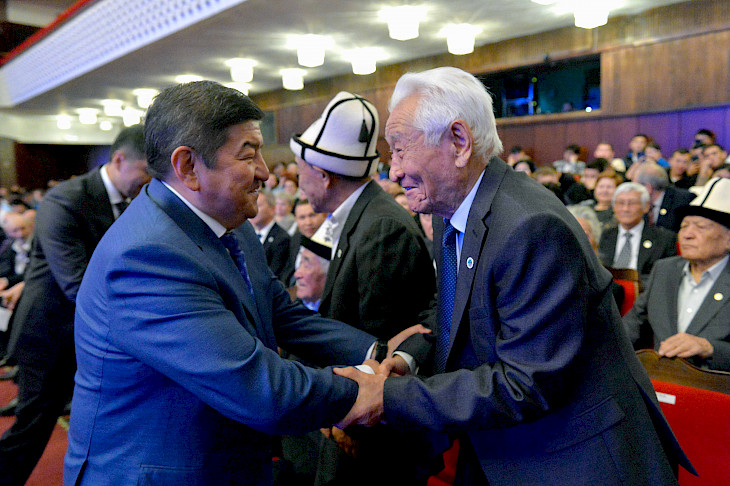 Бишкек, 05.10.23./Кабар/. Министрлер кабинетинин төрагасы Акылбек Жапаров Кыргыз геология кызматынын 85 жылдык мааракесине катышып, геология кызматкерлерин, ардагерлерди жана салтанаттуу аземдин конокторун куттуктады.