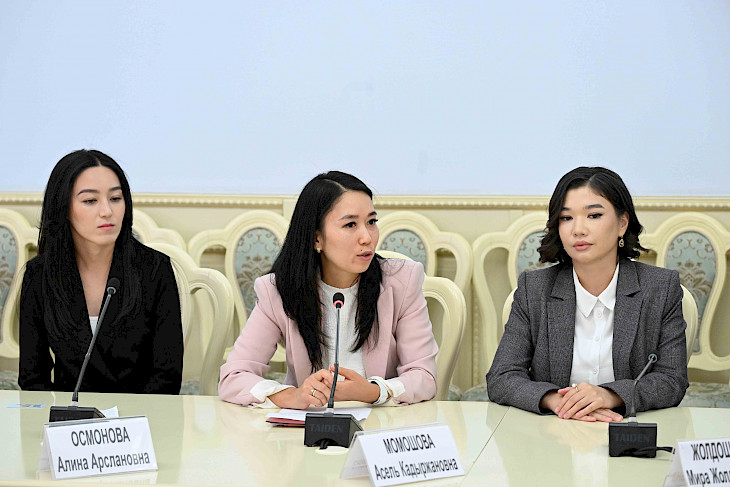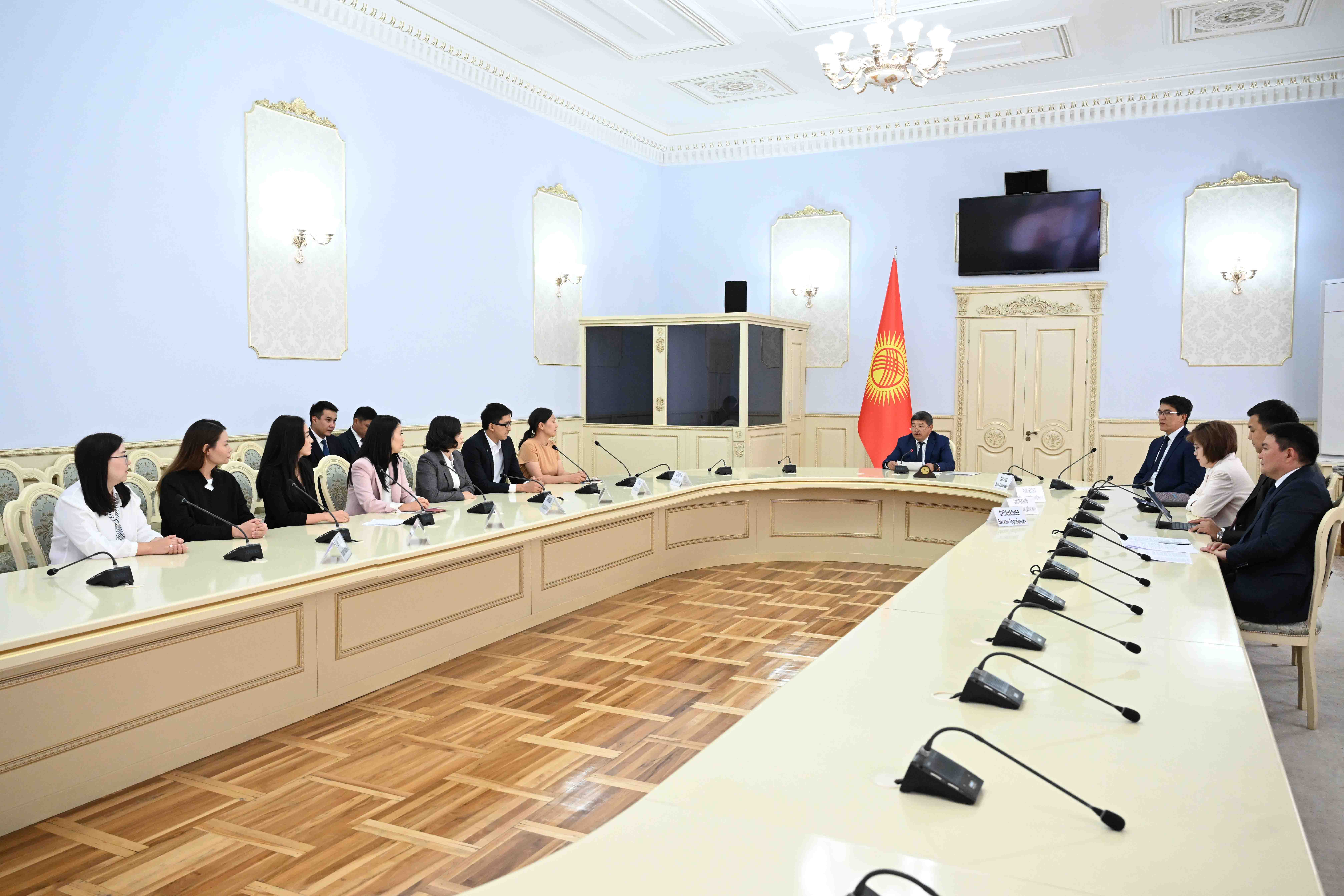 Бишкек, 26.08.24. /Кабар/. Министрлер кабинетинин төрагасы Акылбек Жапаров 2024-2025-окуу жылы үчүн президенттин "Эл үмүтү" эл аралык стипендиясынын жеңүүчүлөрү менен жолукту. Бул тууралуу министрлер кабинетинен билдиришти.