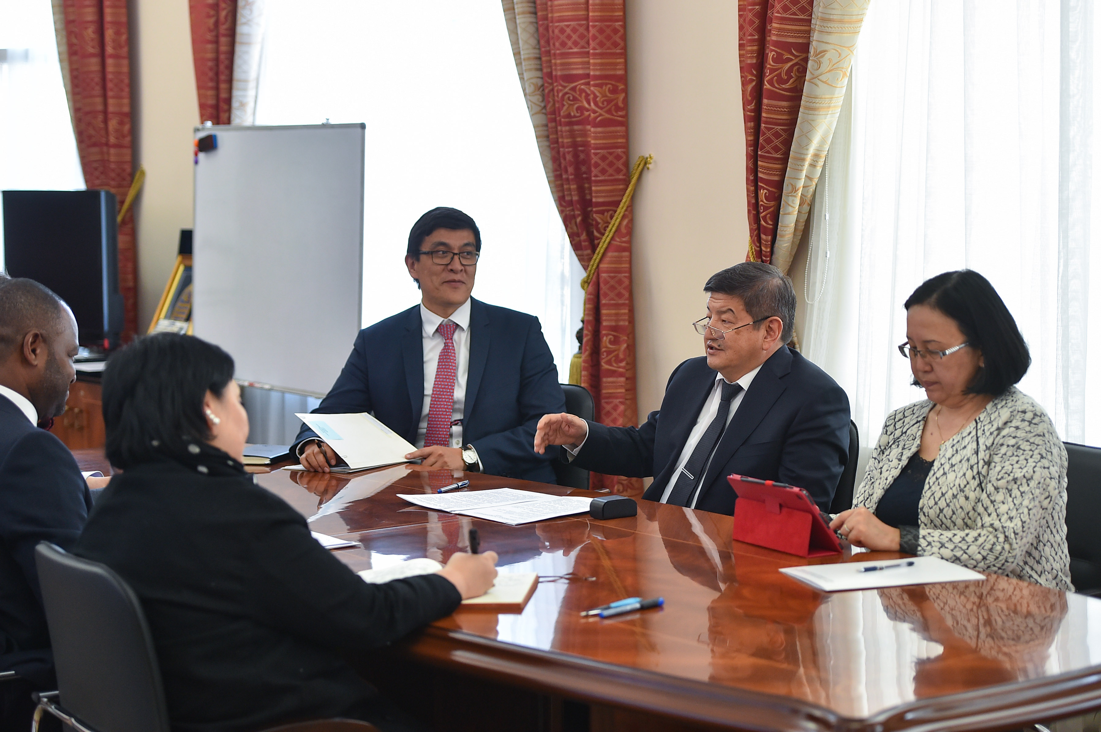 Ошондой эле Озонниа Ожиело министрлер кабинетинин башчысына учурда БУУ тутумунун программаларынын ар кыл тармакта ишке ашырылышы боюнча маалымат берди.