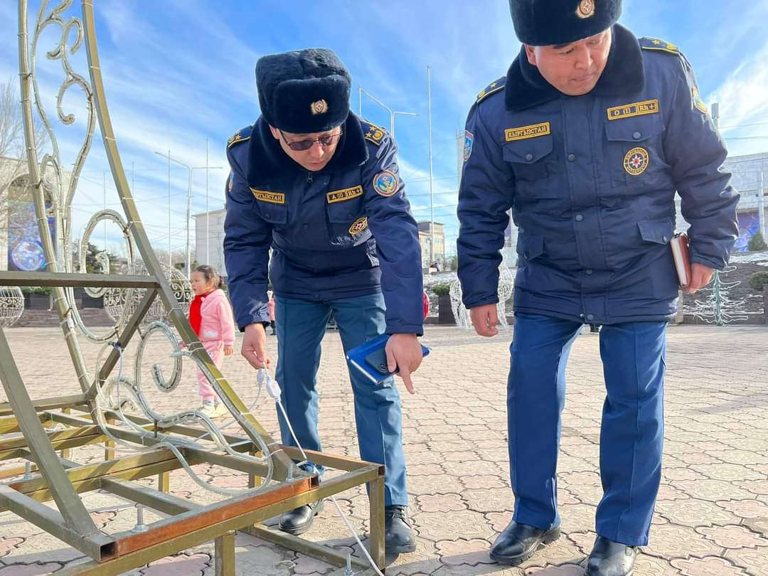 Бишкек, 24.12.23. /Кабар/. Бишкектеги Ала-Тоо аянтында жаңы жылдык жасалгалардын өрт коопсуздугу текшерилди. Бул тууралуу Өзгөчө кырдаалдар министрлигинен билдиришти.