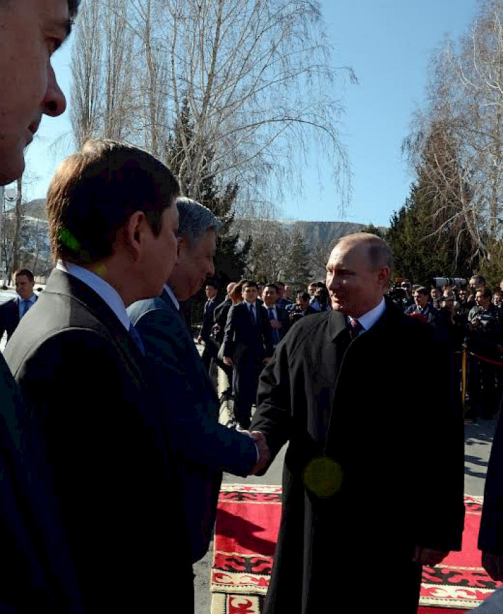 Бишкек, 28-февраль /Кабар/. Бүгүн, 28-февралда Кыргызстандын Президенти Алмазбек Атамбаев мамлекеттик "Ала-Арча" резиденциясында Кыргызстанга расмий иш сапары менен келген Россия Федерациясынын Президенти Владимир Путин менен жолукту.