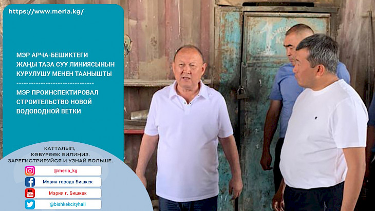 Бишкек, 10.06.23. /Кабар/. Бишкек шаарынын мэри Эмилбек Абдыкадыров Арча-Бешик конушундагы жаңы таза суу линиясынын курулушу менен таанышты. Бул тууралуу муниципалитеттин басма сөз кызматынан билдиришти.