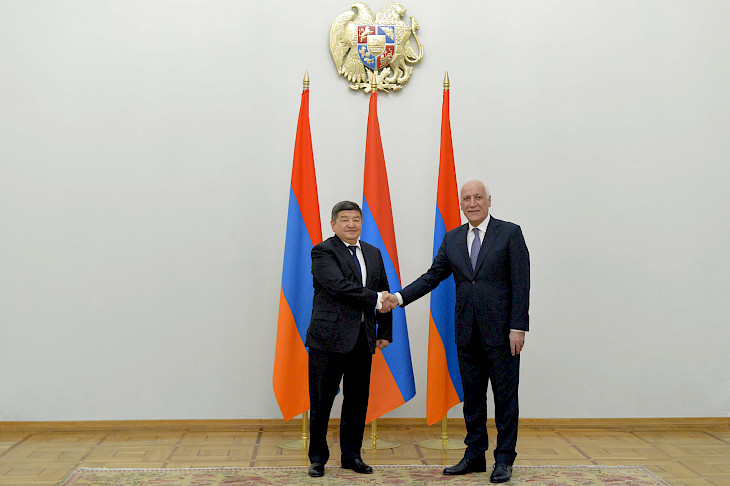 Министрлер кабинетинин башчысы Акылбек Жапаров Армениянын президенти Ваагн Хачатурянга Кыргызстандын президенти Садыр Жапаровдун саламын жана жакшы каалоолорун жолдоду.