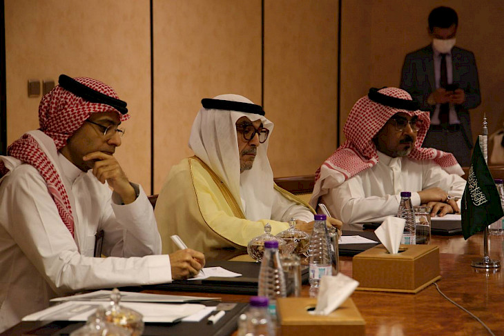 Бишкек, 28.02.22. /Кабар/. Министрлер кабинетинин төрагасынын биринчи орун басары Арзыбек Кожошев Эр-Риядга (Сауд Аравия Королдугу) жумушчу сапарынын алкагында Джидда шаарынын Соода өнөр жай палатасынын төрагасы Мухаммад бин Юсуф Аль Наги менен жолугушту.