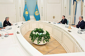 Жогорку даражалуу мейманды президент Садыр Жапаров тосуп алды.