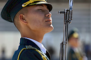 Аэропорттун флагштокторуна Кыргызстандын жана Азербайжандын мамлекеттик желектери илинип, килем төшөлүп, аны бойлото Ардак кароол тизилди.