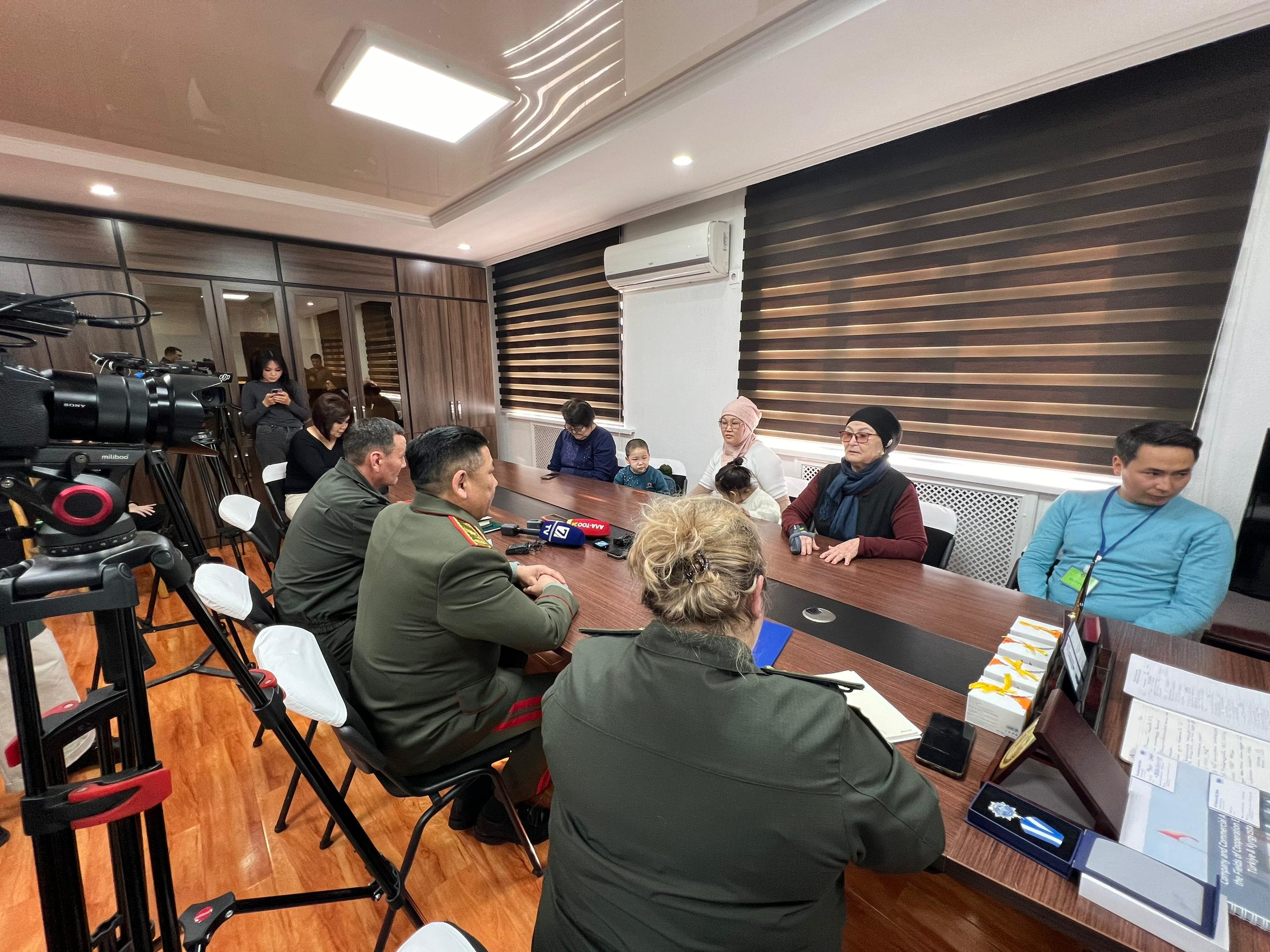 Бишкек, 16.01.25. /Мээрим Дүйшөналиева – Кабар/. Бүгүн УКМКнын Чек ара кызматынын төрагасы Абдикарим Алимбаев 2022-жылы Баткенде орун алган чек арадагы куралдуу жаңжалда каза тапкан чек арачы Мирлан Ниязовдун жубайы Сатина Лайлиева менен жолукту. Жолугушууга “Сезим” кризистик борборунун өкүлдөрү жана журналисттер да катышты.