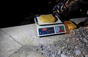 Текшерүү учурунда унаадан бажылык тариздөөдөн өткөндүгүн тастыктаган эч кандай документтери жок ар бири 26 кг салмактагы 136 кап алма табылган. Кармалган товардын жалпы салмагы 3536 кг.