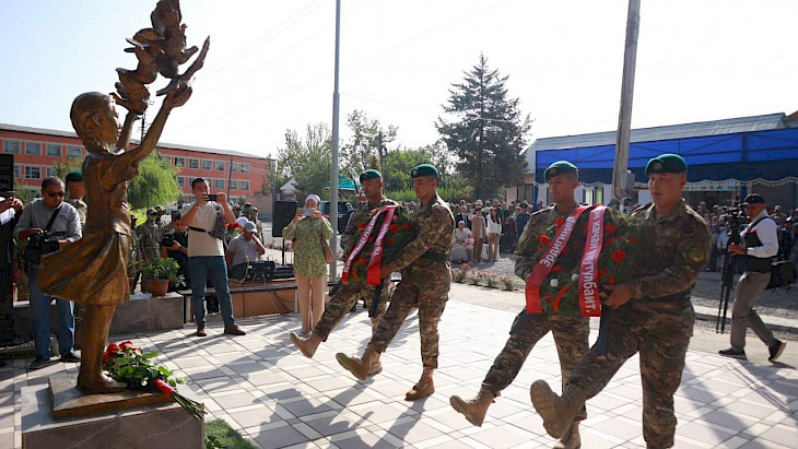 Бишкек, 15.09.23. /Кабар/. Бүгүн Баткен шаарында 2021-жылдын апрелиндеги жана 2022-жылдын сентябрындагы чек ара окуяларынын курмандыктары эскерилип, “Жеңиш” паркында чек ара курмандыктарынын элесин түбөлүккө калтыруу максатында тургузулган эстелик мемориалынын ачылышы болду. Бул тууралуу президенттин Баткен облусундагы өкүлчүлүгүнүн басма сөз кызматынан билдиришти.