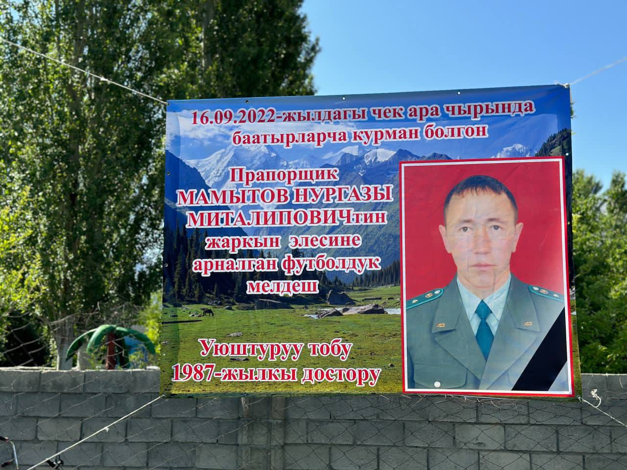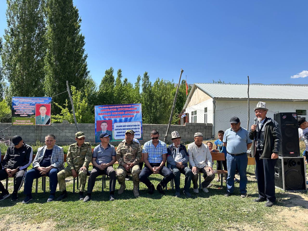 Бишкек, 03.06.23. /Кабар/. Баткен районунун Ак-Татыр айылында кыргыз-тажик чек арасындагы куралдуу жаңжалда баатырларча курман болгон прапорщик Нургазы Мамытовдун жаркын элесине арналган футболдук мелдеш өтүүдө. Бул тууралуу "Кабар" агенттигине президенттин Баткен облусундагы өкүлчүлүгүнөн билдиришти.