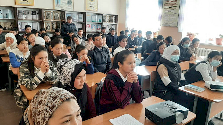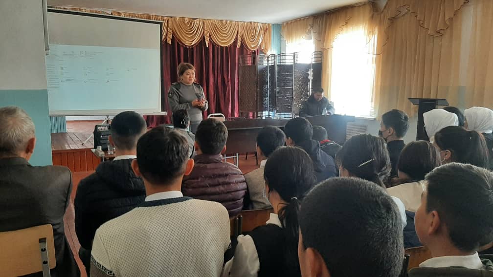 Ошондой эле кылмыштуулукту жана укук бузууларды алдын алуу үчүн балдардын укугу менен милдеттери тууралуу маек курулуп, интернет тармагындагы оюндардын, тасмалардын терс таасирлери, ата-энелер менен балдардын ортосундагы мамилелер жөнүндө кеңештер айтылып, берилген суроолорго жооптор берилди.