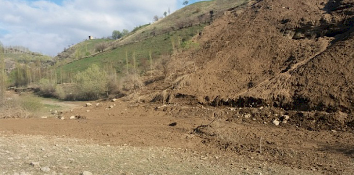 Бишкек, 27.04.18. /Кабар/. Баткен облусунун Кыштут айыл аймагында жайгашкан Сай айылынан 1 чакырым алыстыктагы тоонун боорунан көлөмү 45 миң куб метр жер көчкү түшкөн. ӨКМден кабарлашкандай, анын кесепетинен Сай айылына келүүчү сугат суу каналынын 130 метр аралыгын тоонун башында жайгашкан Мегаком, Билайн компанияларынын базалык станциясына баруучу ички чарбалык жолдун 100 метр аралыгын, Гороту жайлоосуна баруучу 150 метр ички чарбалык жолду жана 7 га айдоо жерди басып калган.