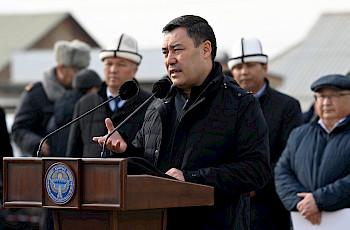 Бишкек, 10.04.24. /Кабар/. Президент Садыр Жапаров бүгүн, 10-апрелде Бишкек шаарындагы Имам Сарахсий атындагы борбордук мечитте Орозо айт майрамына карата Айт намазга катышты.