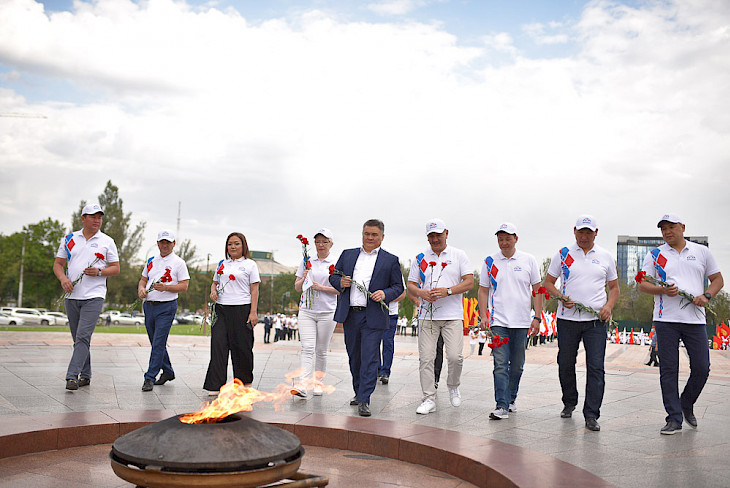 Иш-чара алгач партиянын лидерлеринин келечек муундар үчүн ѳмүрлѳрүн беришкен аталардын элестерине таазим кылышып, ѳчпѳс отко гүлчамбарларды коюусу менен башталды. Андан соң «Биримдик» демократиялык социализм – евразиялык тандоо» партиясынын гимни ырчы Ильяз Абдразаковдун аткаруусунда жаңырды.