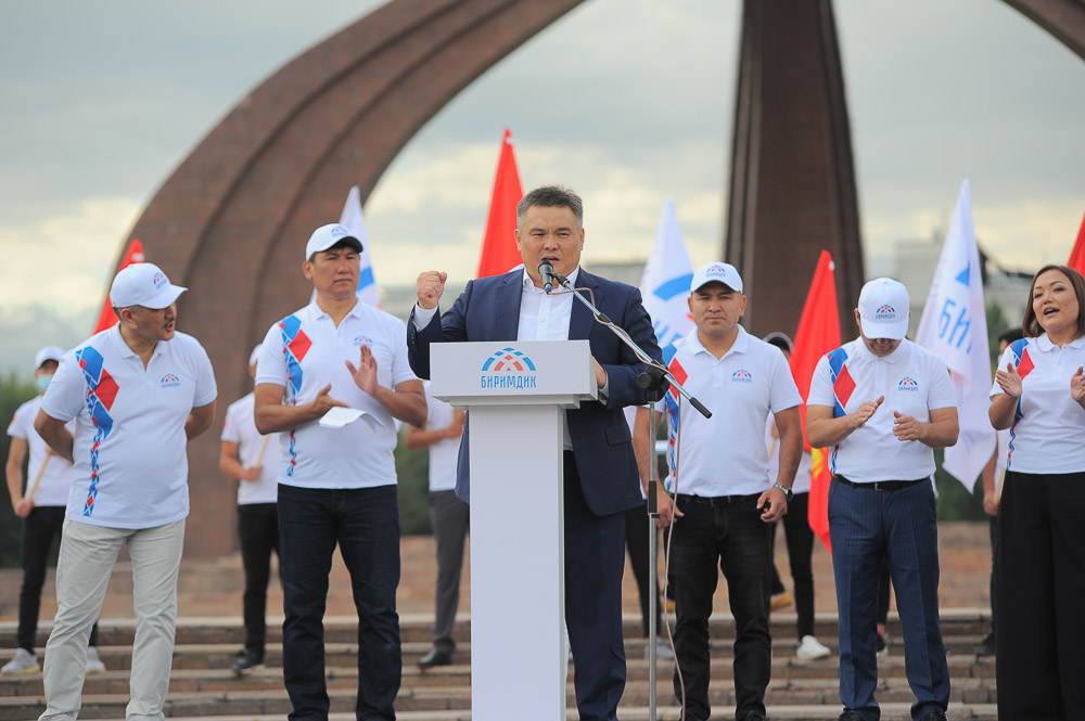 Бишкек, 04.09.20. /Кабар/. Бүгүн, 4-сентябрда алдыдагы парламенттик шайлоонун расмий үгүт кампаниясы башталганына байланыштуу «Биримдик» демократиялык социализм – евразиялык тандоо» партиясы үгүт иштерин салтанаттуу түрдѳ баштады. Иш-чара Бишкектин Жеңиш аянтында ѳтүп, ага партиянын лидерлери, партиянын аймактардагы мүчѳлѳрү, тарапташтары, партиянын жаштар канатынын ѳкүлдѳрү катышты.
