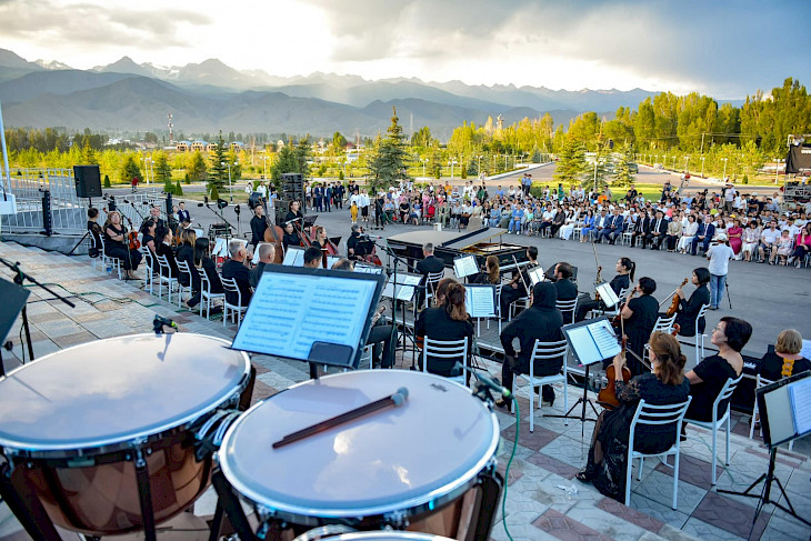 Маалымдама: Бул уникалдуу аянтча 23-июлдан тарта иштей баштаган. Ысык-Көлдүн жээгине Москвадан Россиянын Гнесиндер атындагы музыка академиясынын профессорлору жана окутуучулары, Кыргызстандын булуң-бурчунан келген музыкалык мектептердин таланттуу студенттери, ошондой эле Абдылас Малдыбаев атындагы Кыргыз улуттук академиялык опера жана балет театрынын симфониялык оркестри жана балет труппасы келишти.