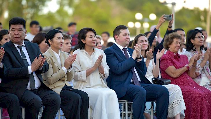 Бишкек, 25.07.23. /Кабар/. Чолпон-Ата шаарындагы "Алтын балалык" реабилитациялык комплексинде 24-июлда биринчи айым Айгүл Жапарованын колдоосу менен "Ала-Тоо симфониясы" аттуу биринчи жайкы чыгармачыл мектебинин салтанаттуу ачылышы болуп өттү.