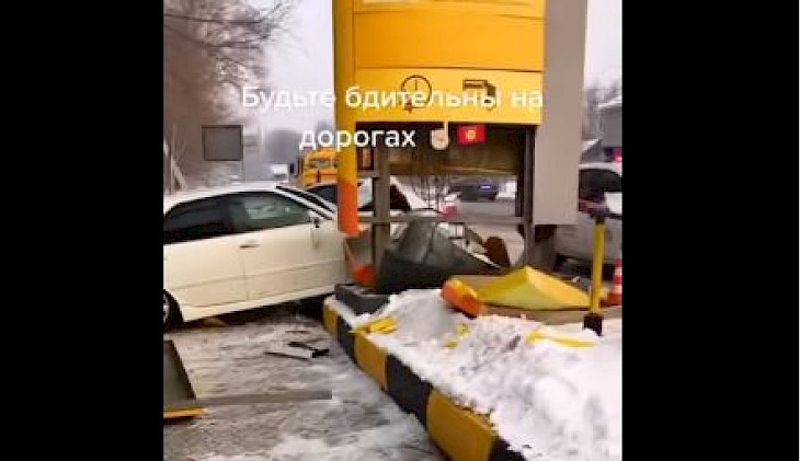 Бишкек, 18.01.23. /Кабар/. Кечээ, 17-январда Бишкек - Кант трассасында "Тойота Марк-2" унаасы "Роснефти" май куюучу жайынын баалар жазылган стенддин сүзүп алган.