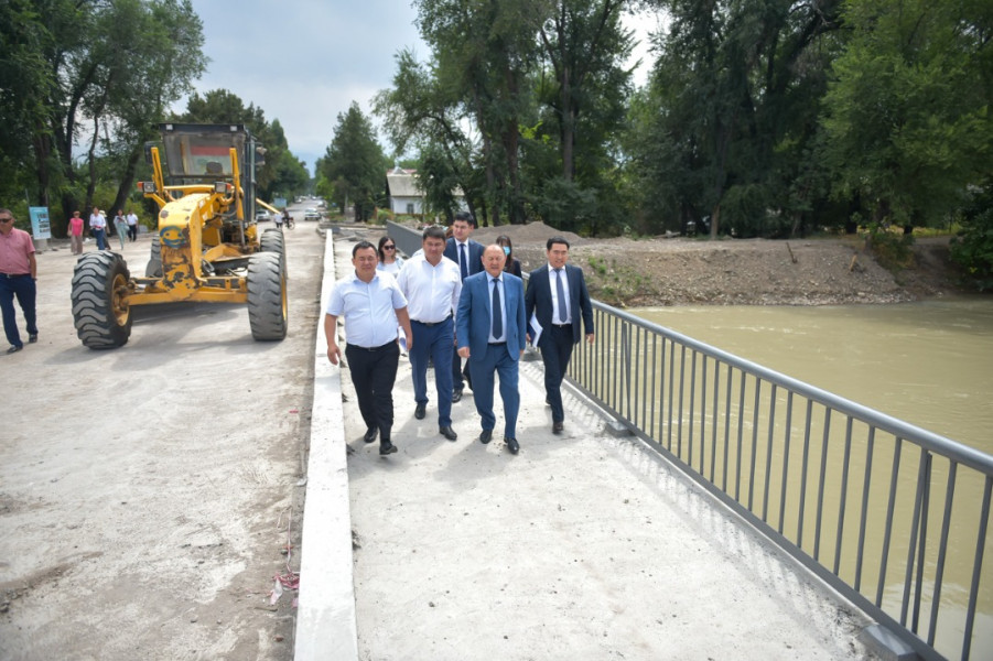 Бишкек, 12.08.22. /Кабар/. Мэр Эмилбек Абдыкадыров жетектеген Бишкек шаардык мэриясынын өкүлдөрү Кытайдан келген гранттык каражатка курулуп жаткан жолдор менен тааныштырды.